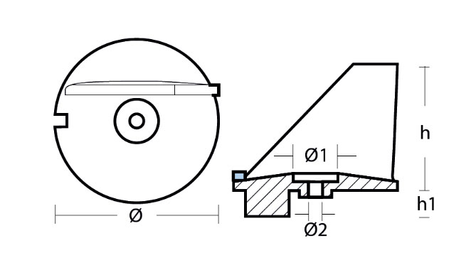 Referencia original: 3B7-60217-0Válido para Tohatsu 2 stroke 25-50HP; 4 stroke 25-30HP Referencia Material Peso h Ø Ø1 Ø2 01255 Zinc 0,32 kg 58 mm 77 mm 20 mm 8 mm