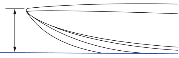 Mida la distancia entre la superficie de la proa de la embarcación y la línea de flotación en aguas tranquilas.