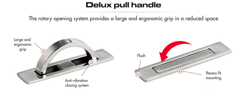 The rotary opening system provides a large and ergonomic grip in a reduced space.