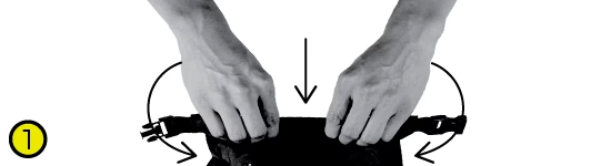 Roll neck tightly towards the front of the waterproof waist pack 3 times.