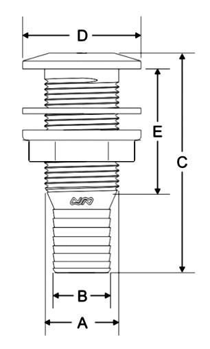 | Referencia | Rosca Ø A | Manguera Ø B | Longitud total C | Brida al ras Ø D | Longitud Rosca Ε | Tapón opcional |