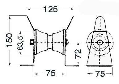 ● Puntera para Botalon de proa ● Ancho: 89mm ● Material Roldana: Goma reforzada