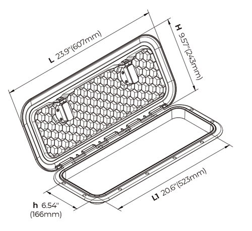 Home > On Board Comfort > Hatches and Recessed Boxes > Rectangular Records > Deck Hatch 243 × 607 mm