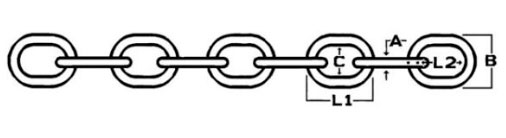 Cadena galvanizada calibrada y concebida para utilización con molinetes.• Norma de cadena DIN766 • Unidad de embalaje 50 m. • Diámetro 10 mm • Carga de rotura 3400 kg • Peso por metro 2,2 kg Referencia A B C L1 L2 07102210 10 m...leer+