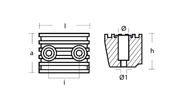 | Referencia | Material | Peso | l | a | h | i | Ø | Ø1 |