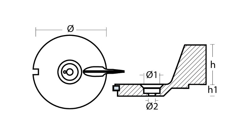 Anodo para aleta de fueraborda Mercury 25 HP • Referencia original: 94286 T   Referencia Material Peso h h1 Ø Ø1 Ø2 00802 Zinc 0,26 kg 52 mm 14 mm 95 mm 22 mm 9 mm Leer más »