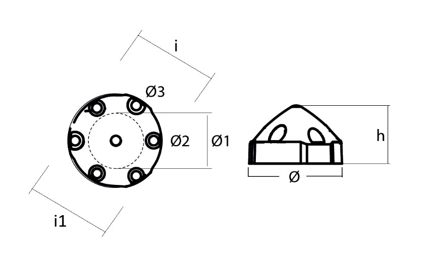 | Referencia | Peso | h | i | i1 | Ø | Ø1 | Ø2 | Ø3 | Cubierta del eje |