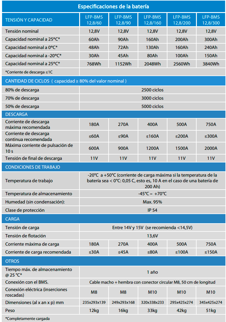 ● Las baterías de fosfato de hierro y litio (LiFePO4 o LFP), son las baterías tradicionales de Li-Ion más seguras. La